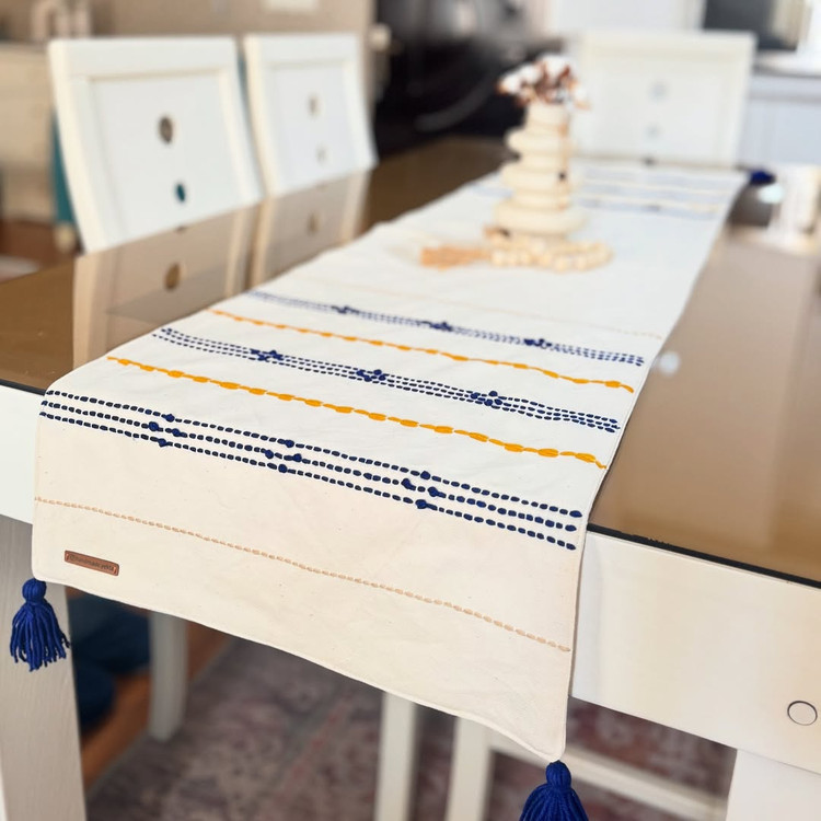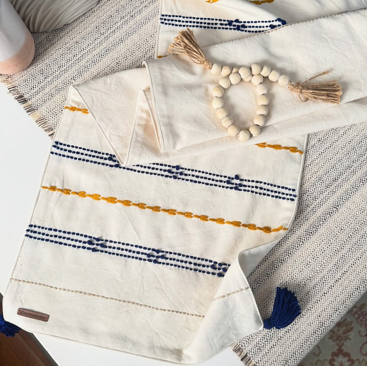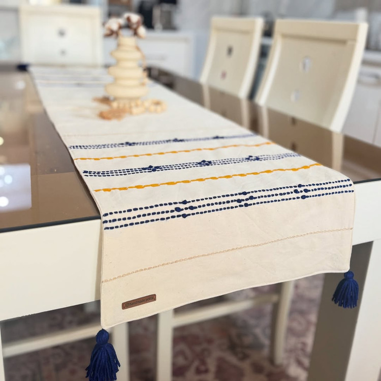 رانر کوک دوزی شده با دست پارچه الیاف طبیعی صد در صد پنبه پشت کار هم از پارچه رویی دوخته شده ابعاد ۱۵۰ در ۴۰