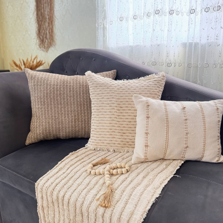 کاور کوسن ابعاد 45 در 45 جنس پارچه پشمی پشت کار پارچه الیاف طبیعی صد در صد پنبه پشت کار زیپدار و از داخل آستر کشی شده