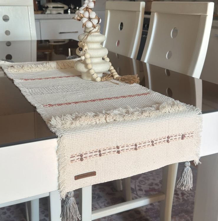 رانر و رومیزی یکی از آیتم هایی هستن که جلوه میز جلومبلی و میز ناهار خوری رو دو چندان میکنن دوخته شده با دست پارچه درشت باف پنبه ای ابعاد 150در 40